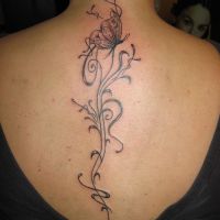 Tatuaż sporej wielkości na plecach przedstawiający twarz Merlin Monroe. Szyję kobiety zdobi również tatuaż. na jej prawym ramieniu narysowane są dwie złączone do modlitwy ręce. Wokół niej są kwiaty oraz napisy. W tle widoczny samochód. Jest to tatuaż w ciemnych kolorach z wieloma motywami.