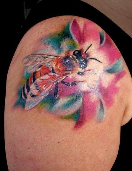 Pszczoła na kwiatku tatuaż