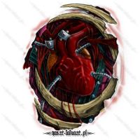 Wzór tatuażu z motywem biomechanicznym. Rysunek przedstawia ostrza, mięśnie oraz twarz demona. Rewelacja!