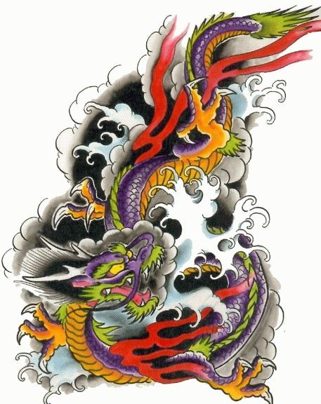 Kolorowy smok chiński wzór tatuaż