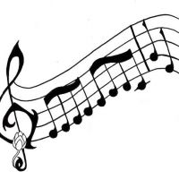 Wspaniały wzorek z nutami na pięciolinii. Wzór w czarnym kolorze, elementy wycieniowane.