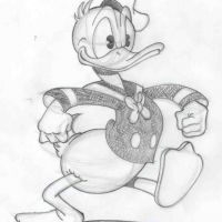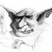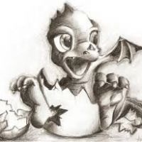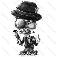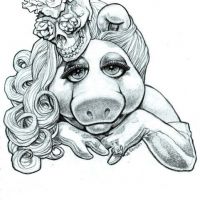Zabawny stworek z bajki wyskakujący z tortu. Wzór tatuażu stworzony na podstawie bajki.