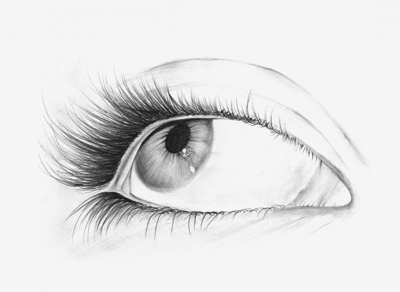 Wzór tatuażu z prawym okiem. Na powiece są długie, czarne rzęsy. Źrenica przesunięta do kącika oka.