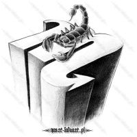 Genialny wzór tatuażu ze skorpionem. Projekt wygląda bardzo profesjonalnie, cieniowany, z idealnymi detalami.